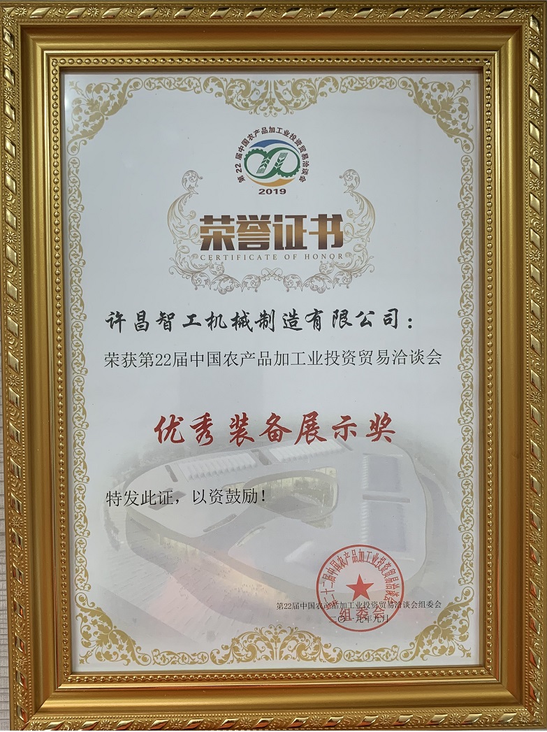 許昌智工榮獲中國(guó)農(nóng)產(chǎn)品加工業(yè)優(yōu)秀裝備獎(jiǎng)
